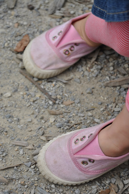 I know that as a mother I should probably feel too ashamed to show you that I let my youngest out with holes in her leggings, yet strangely I'm not! I find something utterly charming in that little knee poking out and those oh so cute toes in her pretty pink sneakers.